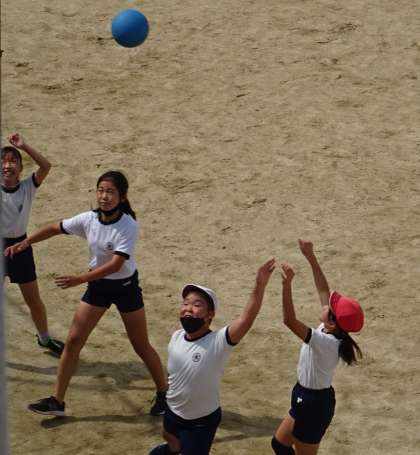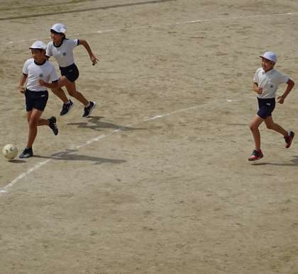 運動場で楽しく遊んでいる様子です。