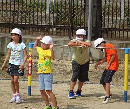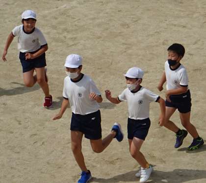 運動場で元気に遊んでいる様子です。