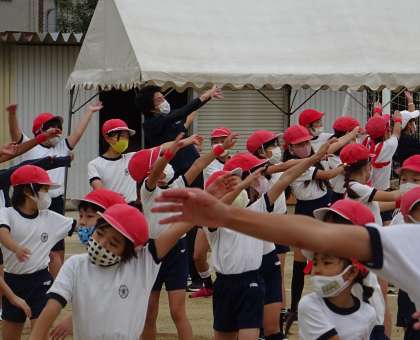 プログラム2番、全学年による準備体操でした。