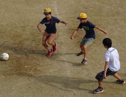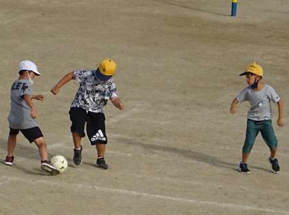朝の用意を済ませ、運動場で元気よく遊んでいる子どもたちの様子です。