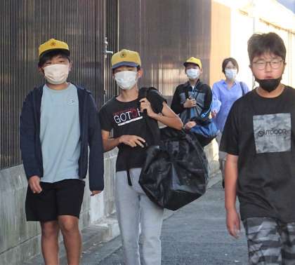 登校している様子です。