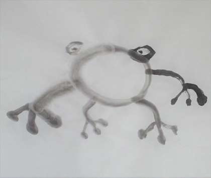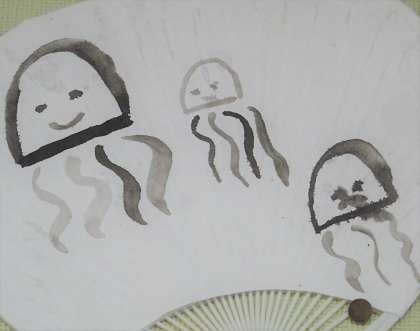 うちわに描いた水辺の生き物たちです。
