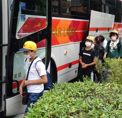荷物を預け、バスに乗車します。