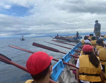 帰りはボートに引いてもらいます。