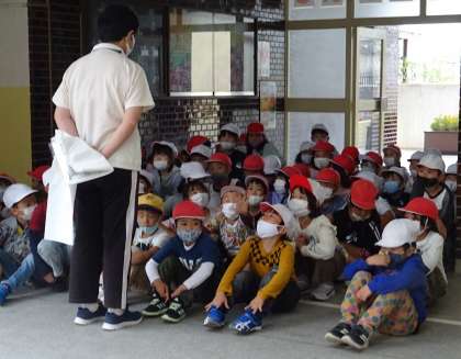 先生から注意事項を聞いて、いもほりに挑戦します!