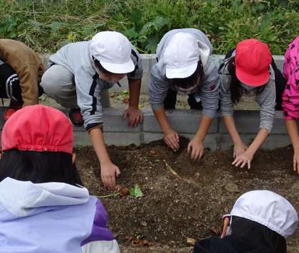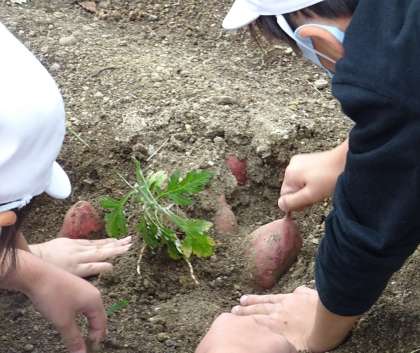 2年生は、学習園に植えていたサツマイモを収穫しました。