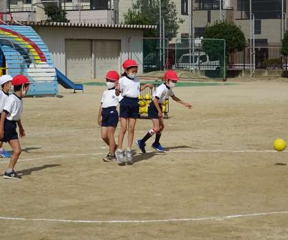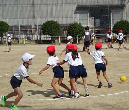 1年生は、体育の授業で「ころがしドッチボール」に挑戦しました。