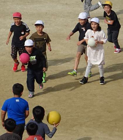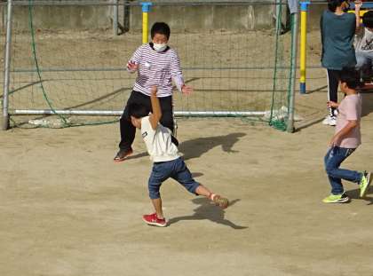 運動場で楽しく遊んでいる様子です。