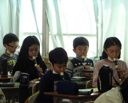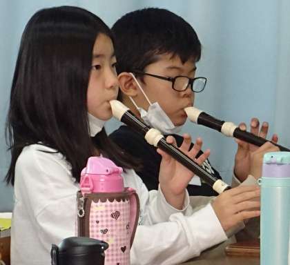 リコーダーの練習をしている様子です。
