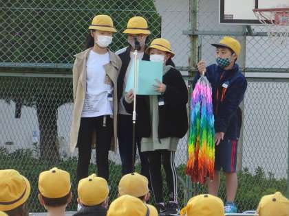 6年生からは、先週行われた「折りづる教室」の報告と参加してくれた皆さんへのお礼が伝えられました。