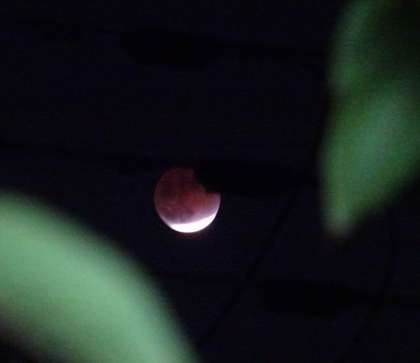 午後6時過ぎ、学校から見えた月食の様子です。