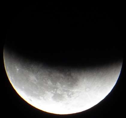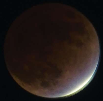 この日に観察できた月食は「部分月食」ということですが、全体の97.8%が地球の影に入った姿は、ほぼ「皆既月食」でした。