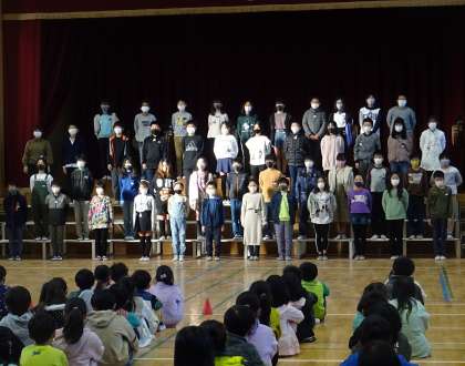 感染対策のため、1〜3年生に向けた朝の時間と、4〜5年生に向けた昼の時間の、2回に分けて行われました。