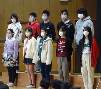 木曜日に行われた平和集会では、6年生による呼びかけと歌が発表されました。