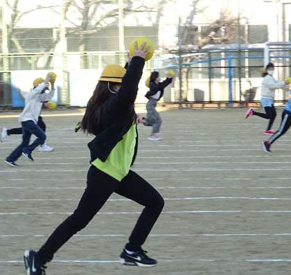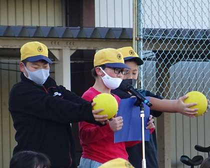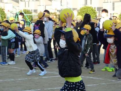 たてわり班のメンバーが協力し、色々な持ち方でボールを運ぶゲームをしました。