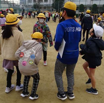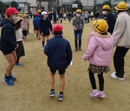 たてわり班で輪になって、楽しく活動している様子です。