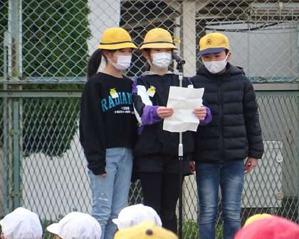 図書委員会から図書ボランティアさんへの感謝メッセージ募集と、児童会からあいさつ運動についてのお知らせがありました。
