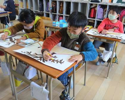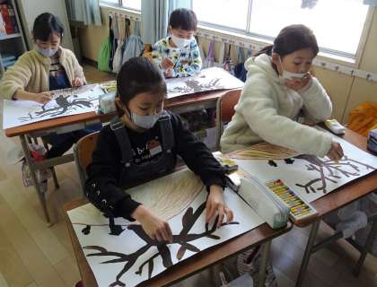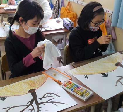 3年生は、図工の授業で「モチモチの木」の絵を描いています。