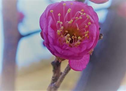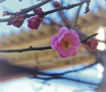 厳しい寒さの中、力強く咲く小さな赤い花。