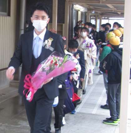 花道を行く卒業生
