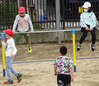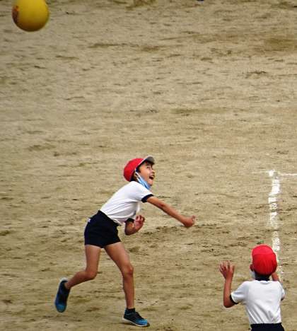 運動場で元気に遊んでいる子どもたちの様子です。