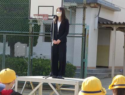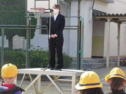 春休みの生活についての話の後、転出することが決まった教職員からお別れのあいさつがありました。