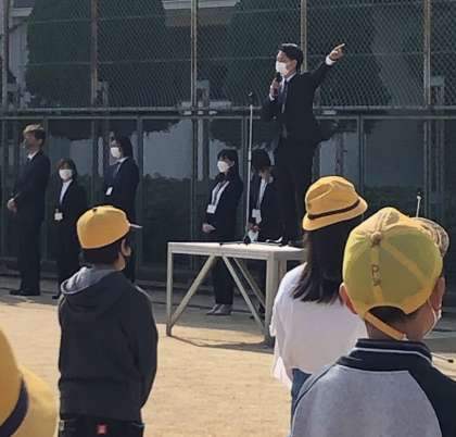 着任式で紹介された教職員へ、子どもたちから温かい拍手が送られました。