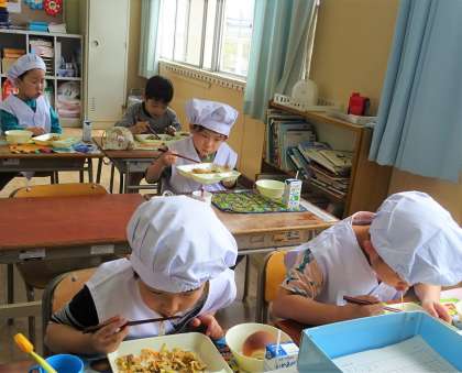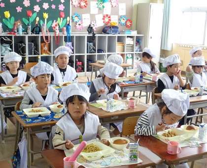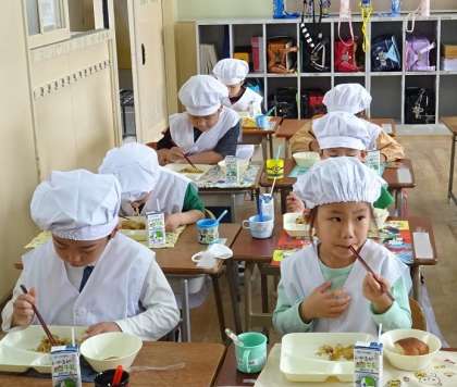 おしゃべりなしの「黙食」ですが、みんなおいしい顔で食べていました。