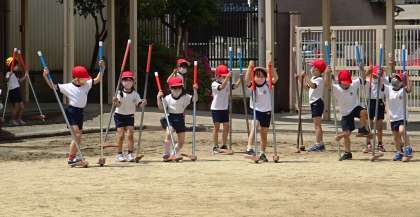 安全な遊び方や基本的なルールを教わった1年生の子どもたち。