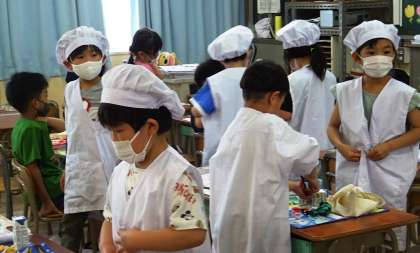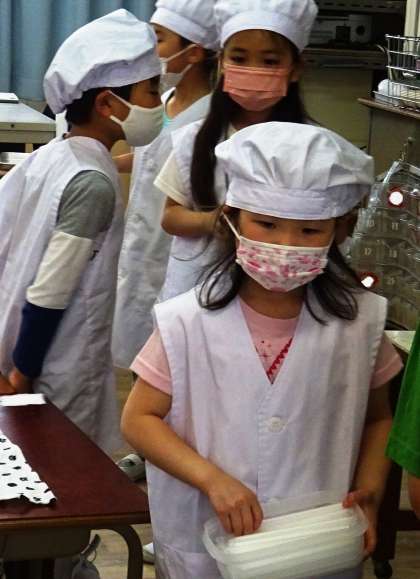 給食当番の様子です。