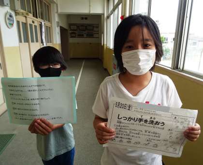 給食委員会によるお昼の放送の様子です。