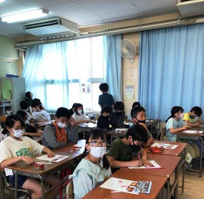 最後にミルクボーイの「食べたらみがこう」の動画を観て、楽しみながら歯みがきの大切さを教わりました。