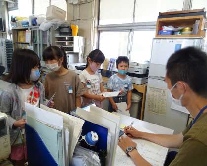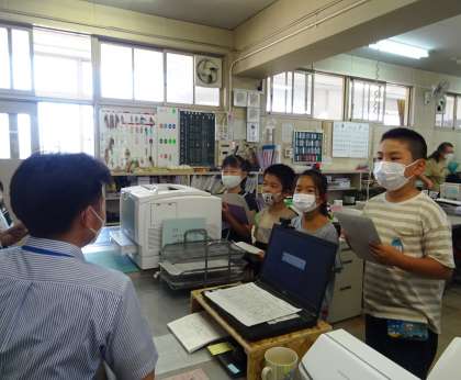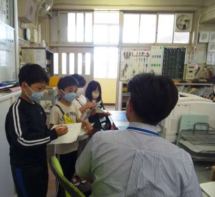 真剣な表情で質問し、メモを取る子どもたち。