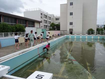 本校では6月23日(火)よりプール開きとなり、その準備でプールの清掃などを行います。その前に、飼育栽培委員のみんなが、これまでプール槽で繁殖していた“やご”捕りをしてくれました。現在は身近にやごを見ることも少なくなりましたが、その生態を観察する絶好の機会でした。捕ったやごは、学校全体で勉強するものとして飼育していきます。ところで皆様は、やごが成長すると何になるか、ご存じですね?