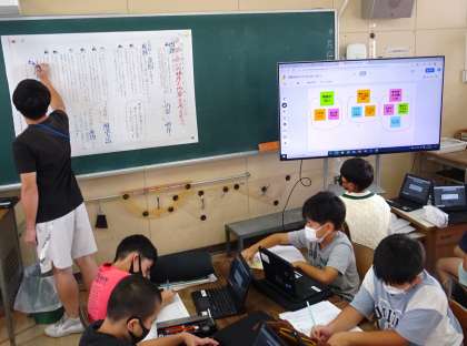 自分の考えや友だちの意見が次々と画面に貼られ、全体に共有されていきます。