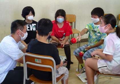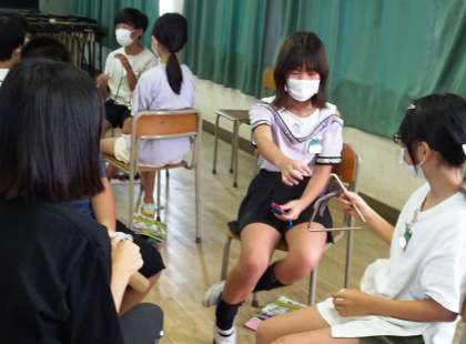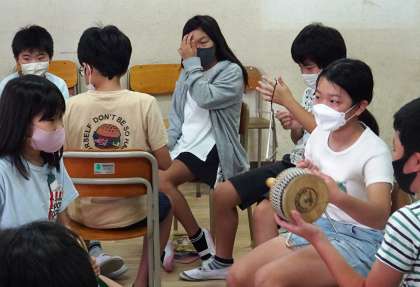 色々な楽器を使って、自分で選んだリズムを打ちます。
