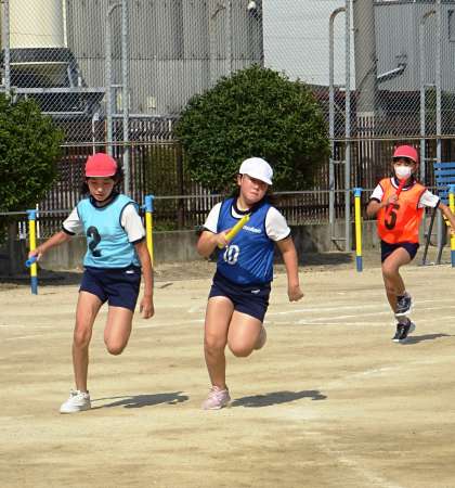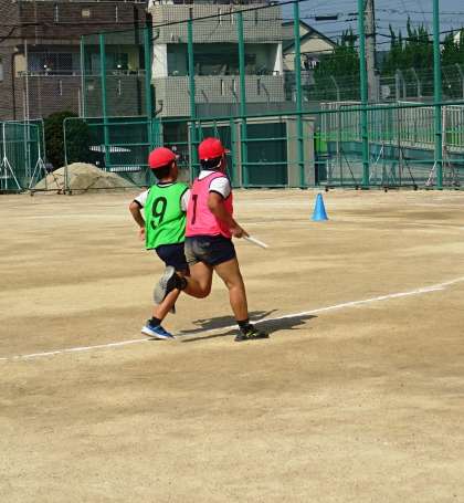 リレーの練習をしている様子です。