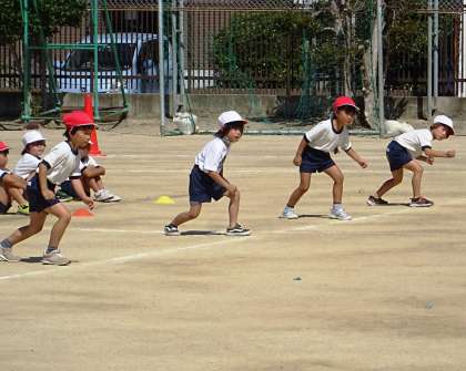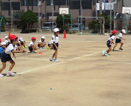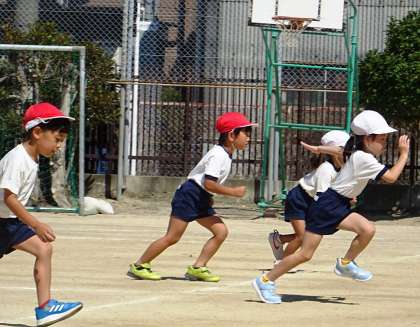 1年生は、運動場の真ん中を一直線に走ります。