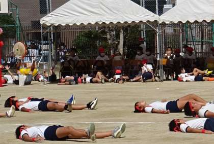 児童席にいる子どもたちも吹っ飛んでます。