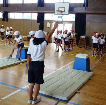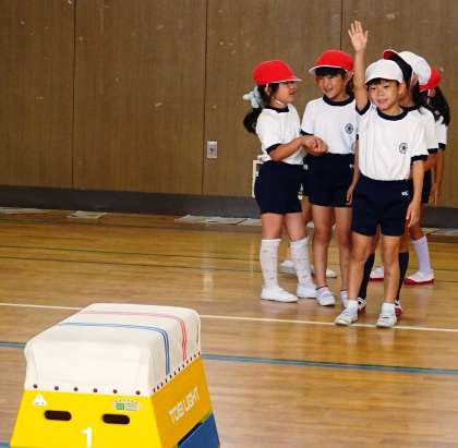 跳び終わった人は振り返って次の人に合図を送り、それを確認してから次の人が跳びます。