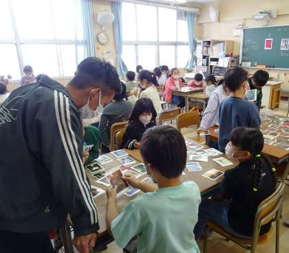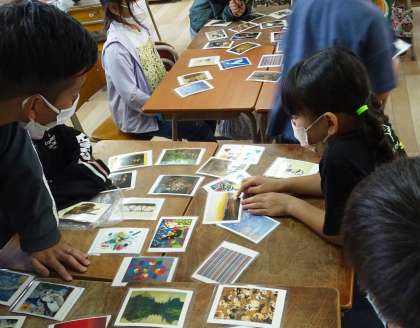 ゲームを取り入れた活動で、楽しみながら鑑賞している様子です。