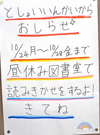 図書委員会から「読み聞かせ会」のお知らせがありました。