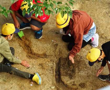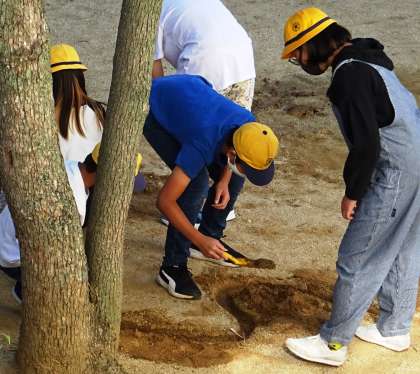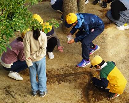 中庭で実験している様子です。