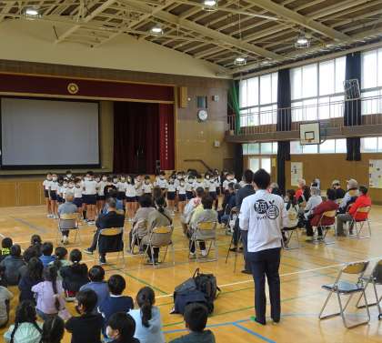 4年生は、加美東地域を盛り上げようと5月から取り組んできた学習のまとめを、地域の方を学校に招待して披露しました。