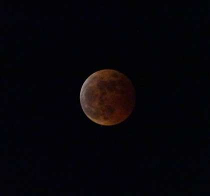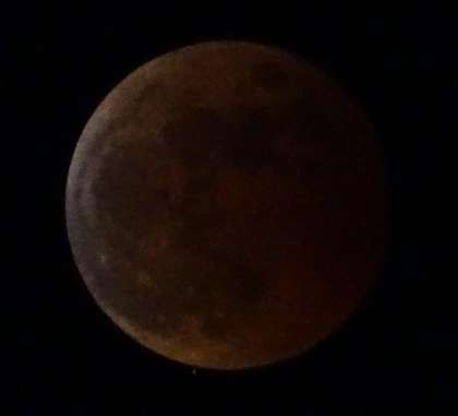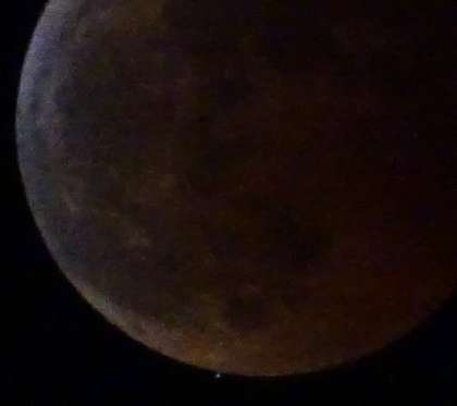 赤黒い月の左下に、小さく光っているのが天王星です。