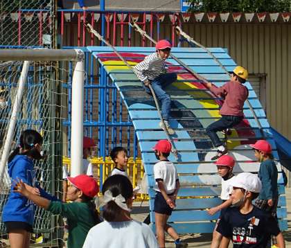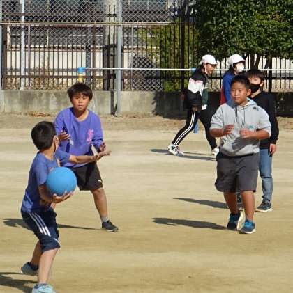 運動場で楽しく遊んでいる様子です。