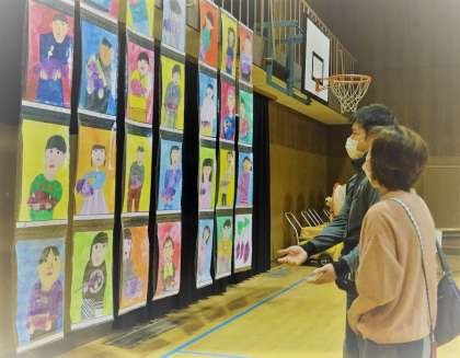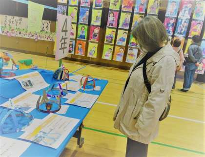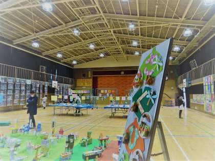 学校公開期間中、講堂に子どもたちの作品を展示しています。