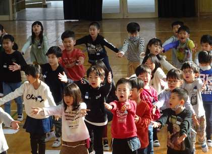 1年生による集会発表の様子です。