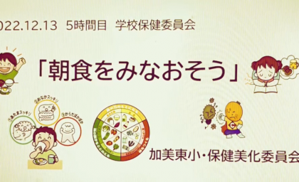 保健美化委員会の児童らによる劇やクイズをはじめ、栄養バランスが良く簡単にできる朝ごはんレシピの紹介なども行われ、楽しみながら学ぶことができました。