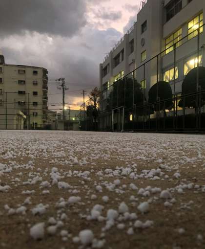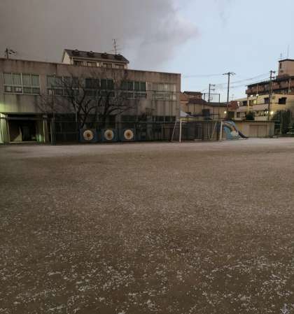 運動場が、うっすらと白く染まりました。